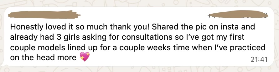 This step teaches you how to ask the right questions, set clear expectations, colour match and what to actually say to convert clients into paid bookings. You will be able to easily identify how much hair someone needs, based on hair density and client goals. You’ll learn how to blend multiple colours together and recommend the right amount of hair so you can deliver flawless results.
